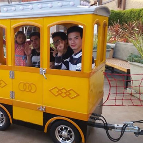 Pacific Mini Express has an Eco-Friendly Full Electric Train that contains one locomotive, one coal car, two passager cars and one caboose. The train has sound, lights and security locks in each car.